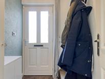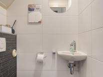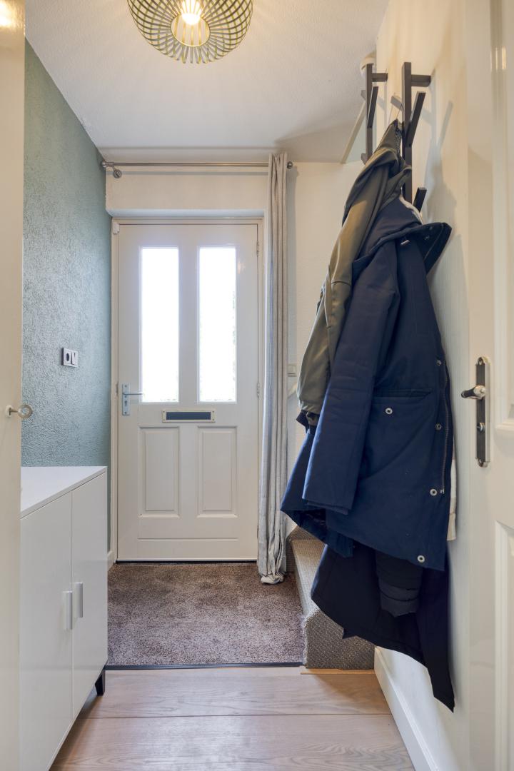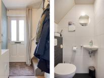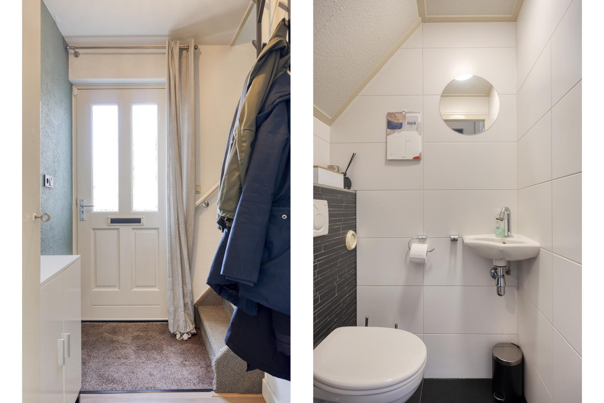 Entree in de hal met separaat toilet en fonteintje, meterkast (7 groepen) en trapopgang naar de eerste verdieping.