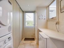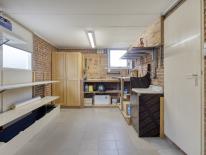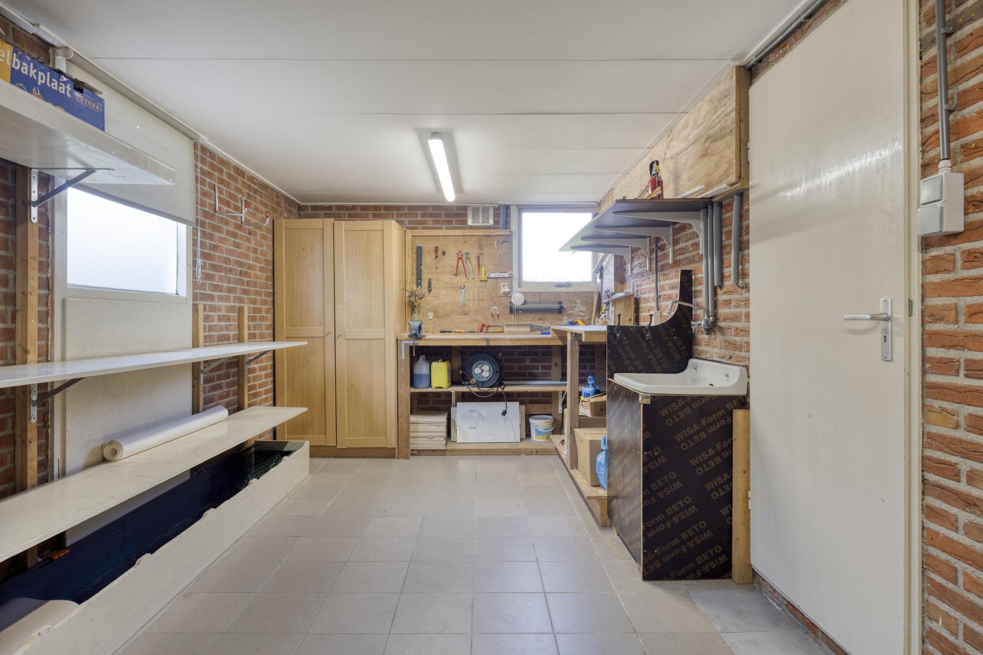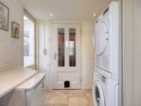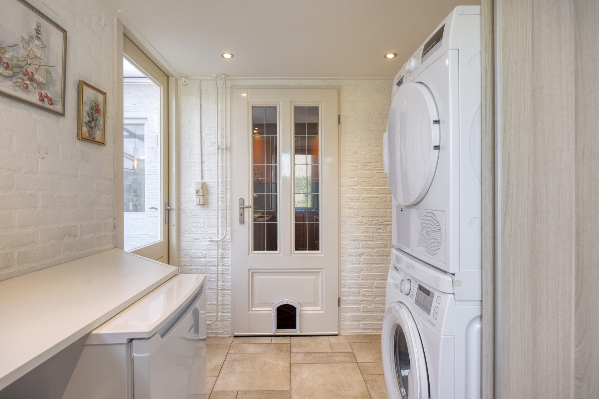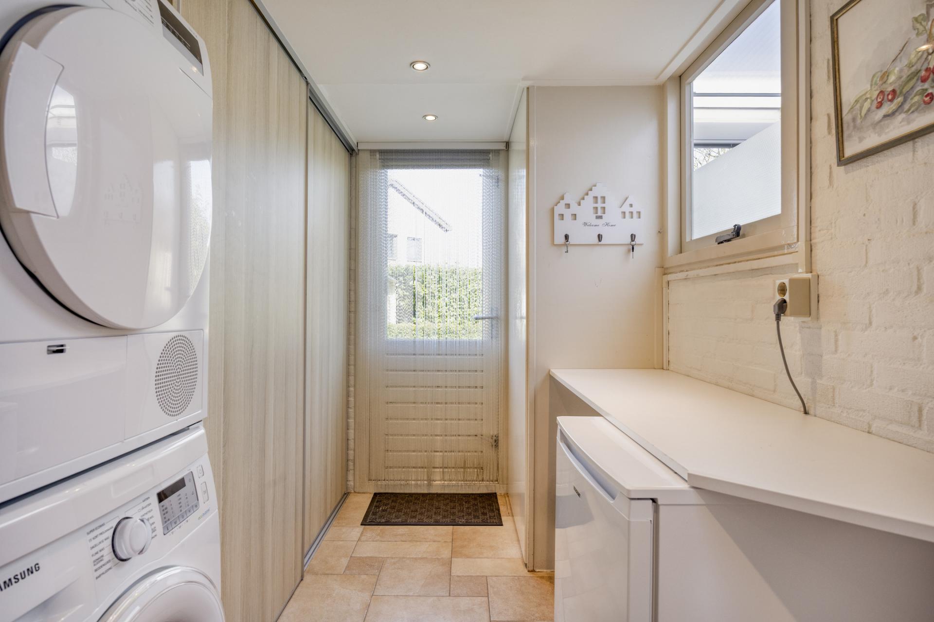 De uitgebouwde bijkeuken is voorzien van een brede kastenwand met veel bergruimte en de opstelling van de CV-ketel (nieuw geplaatst in 2023) Ook de aansluitingen voor het witgoed bevinden zich in de bijkeuken.