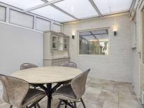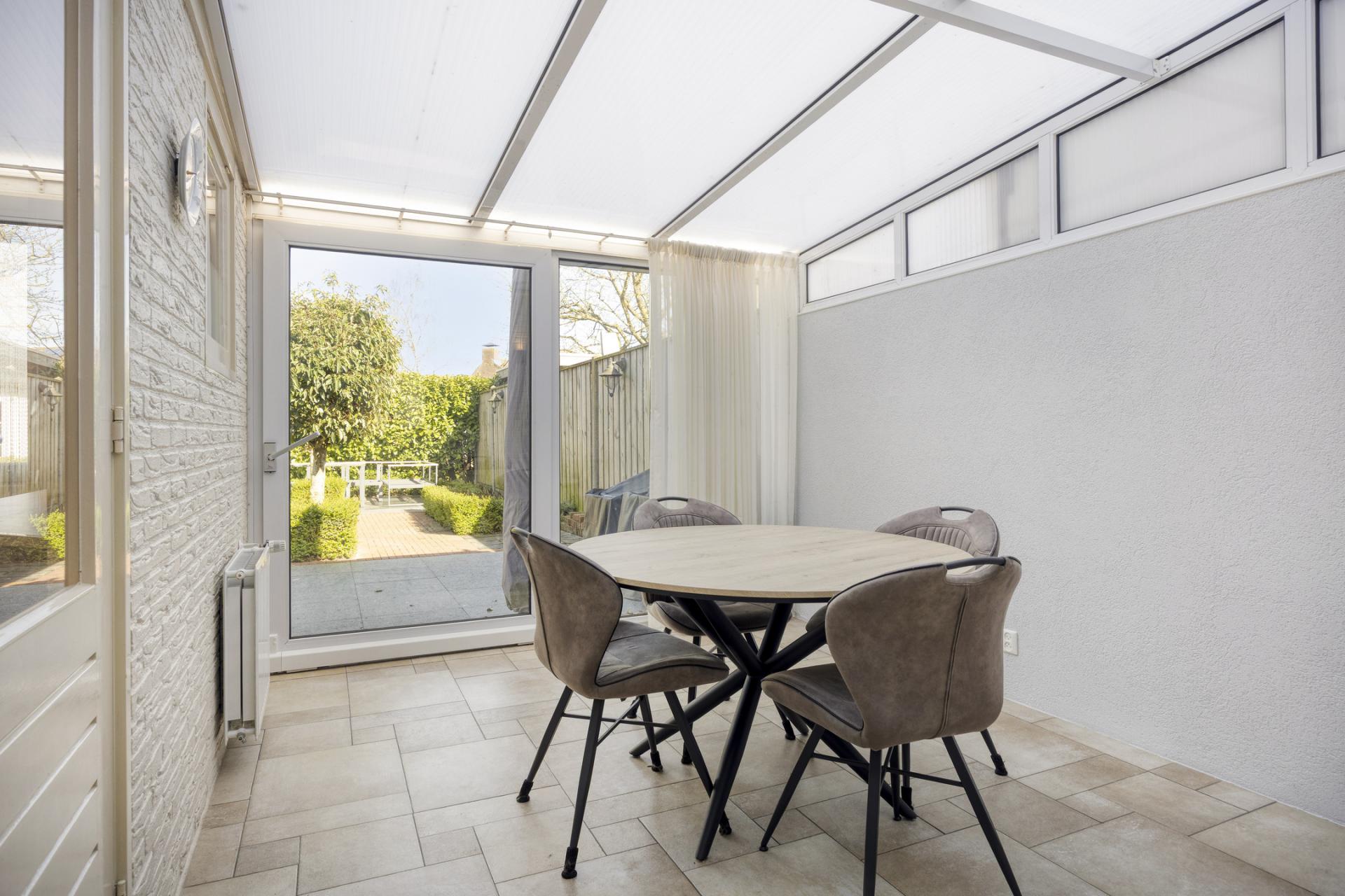 Verder op de begane grond de heerlijke serre welke een afmeting heeft van 15m2. Door de schuifpui loopt u zo het mooie terras op. Het dak van de serre/tuinkamer is voorzien van een zonnescherm welke elektrisch bedienbaar is.