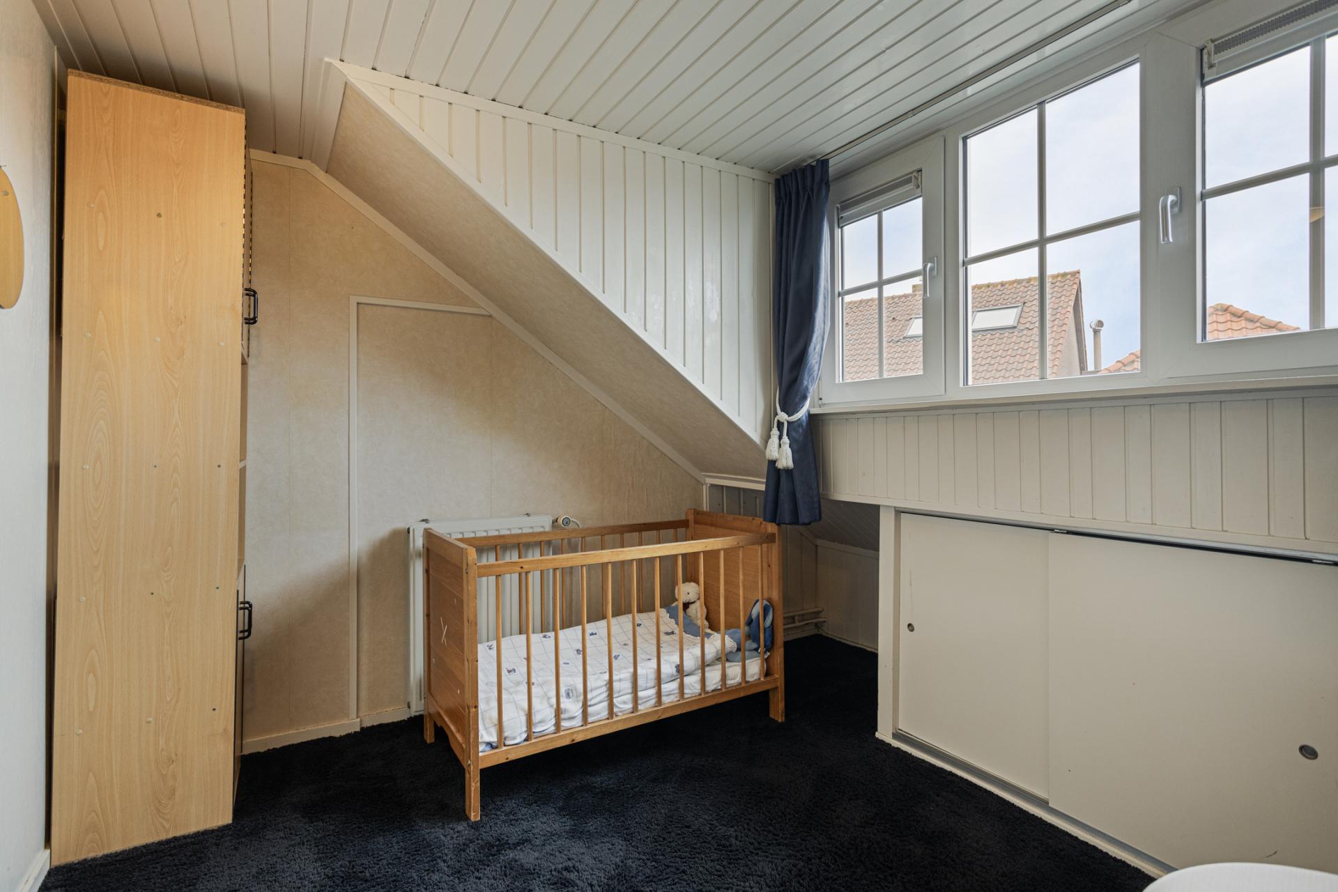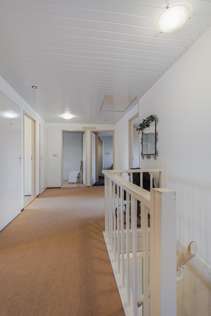 Aan de linkerzijde van de hal bevindt zich aan de voorzijde het kantoor met vaste kast, een heerlijke werk/studeerplaats maar uiteraard kan dit vertrek ook dienst doen als slaapkamer of speelkamer.