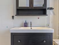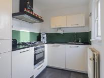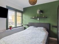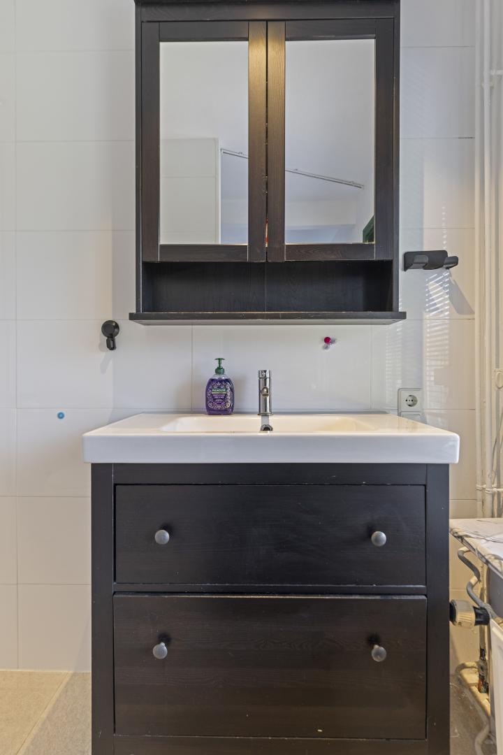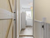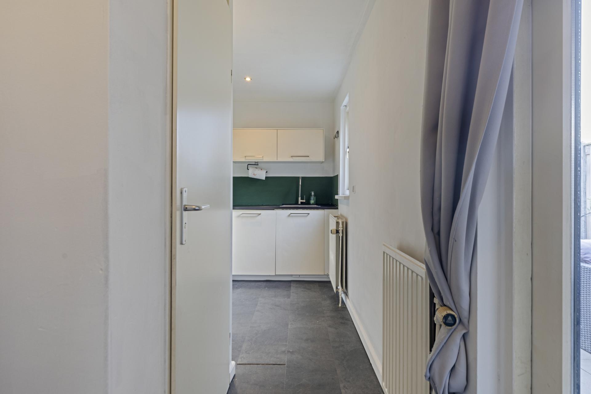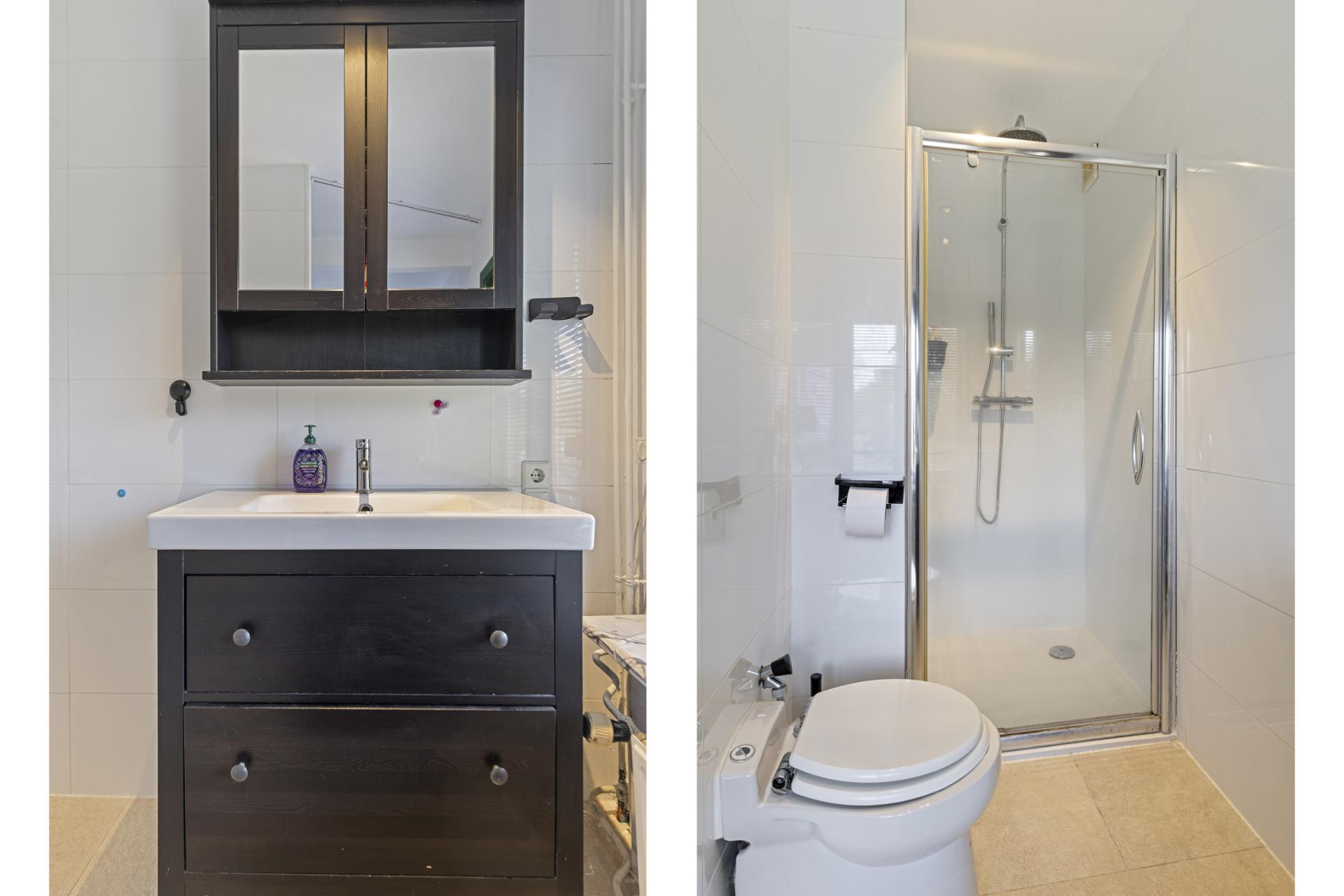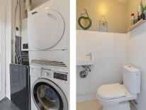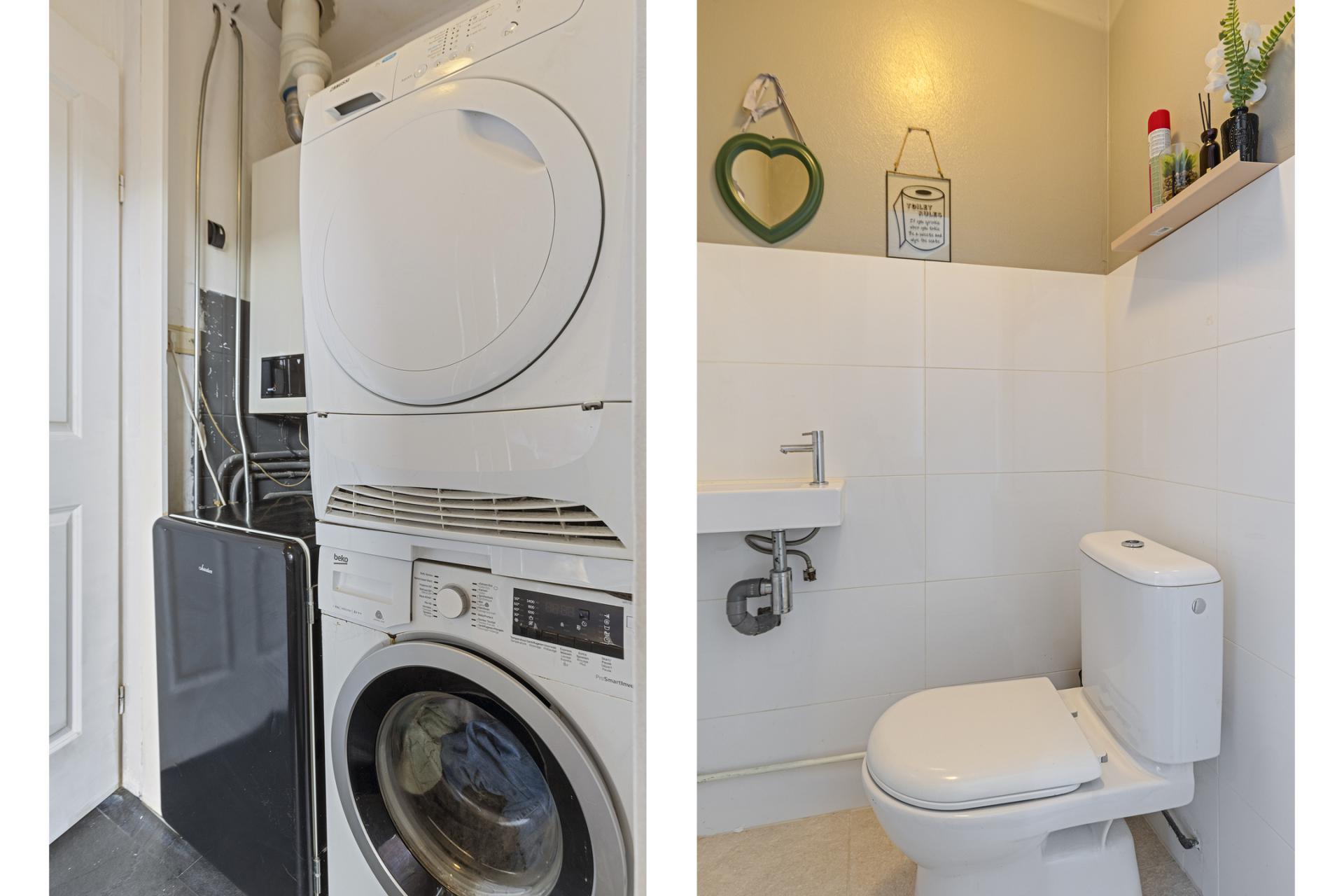 De woonkamer is met 32m2 oppervlakte ruim te noemen en aan de achterzijde loopt u middels de brede schuifpui zo het terras op. Het zitgedeelte bevindt zich aan de voorzijde het eetgedeelte aan de achterzijde. Aansluitend betreden we de dichte keuken. In het voorportaal vinden we het nette separate toilet met fonteintje en de CV-opstelling (Nefit bwjr. 2007) alsook de aansluitingen voor het witgoed. De keuken is gesloten en voorzien van enkele ingebouwde apparaten maar eigenlijk is deze keuken aan vervanging toe. We adviseren hier een gaaf keukenblokje te plaatsen en dan is het een heerlijke ruimte!