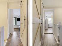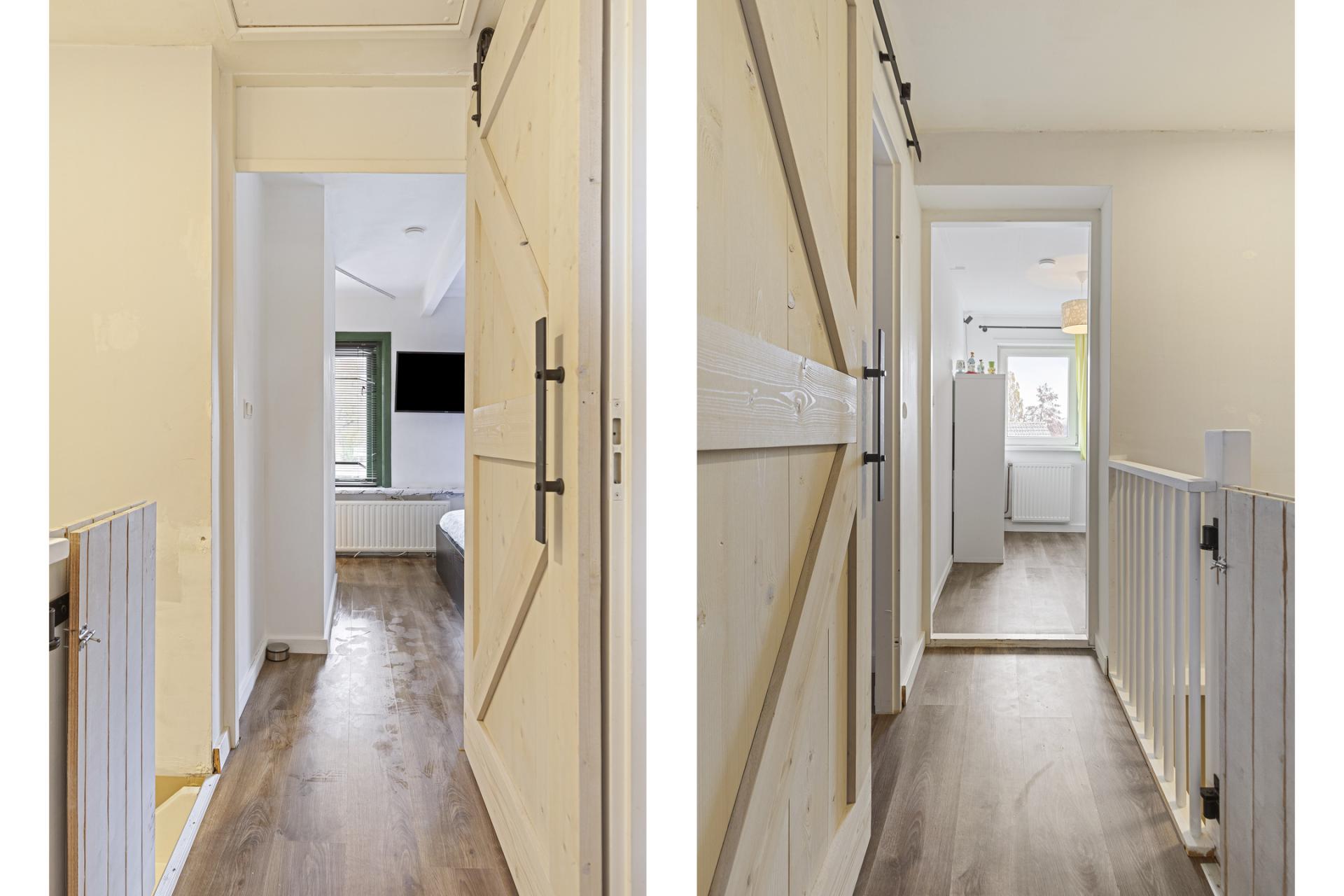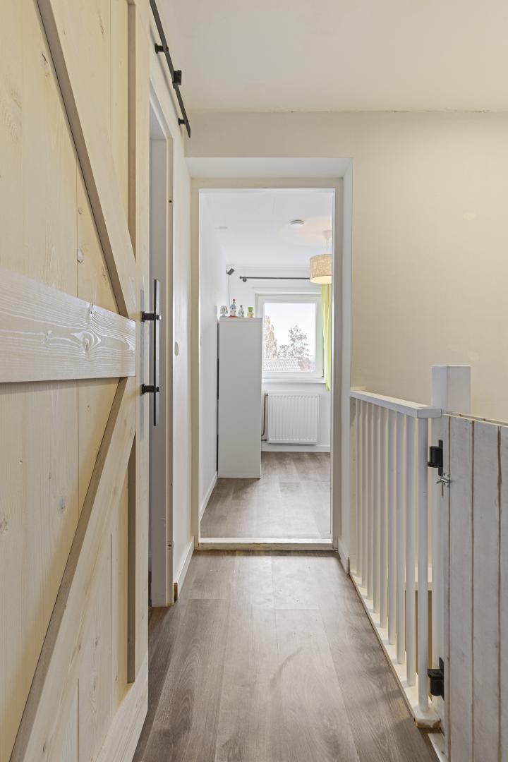Door de opgaande kap is er geen hinder van schuine dakvlakken. We vinden hier een ruime overloop en vier kamers. Alle vier de kamers zijn in gebruik als slaapkamer maar één ervan is alleen bereikbaar middels een andere slaapkamer. De grootste kamer is voorzien van een douche -met wasgelegenheid en een tweede toilet. Het geheel is en suite.