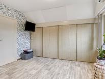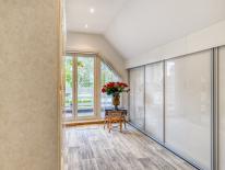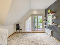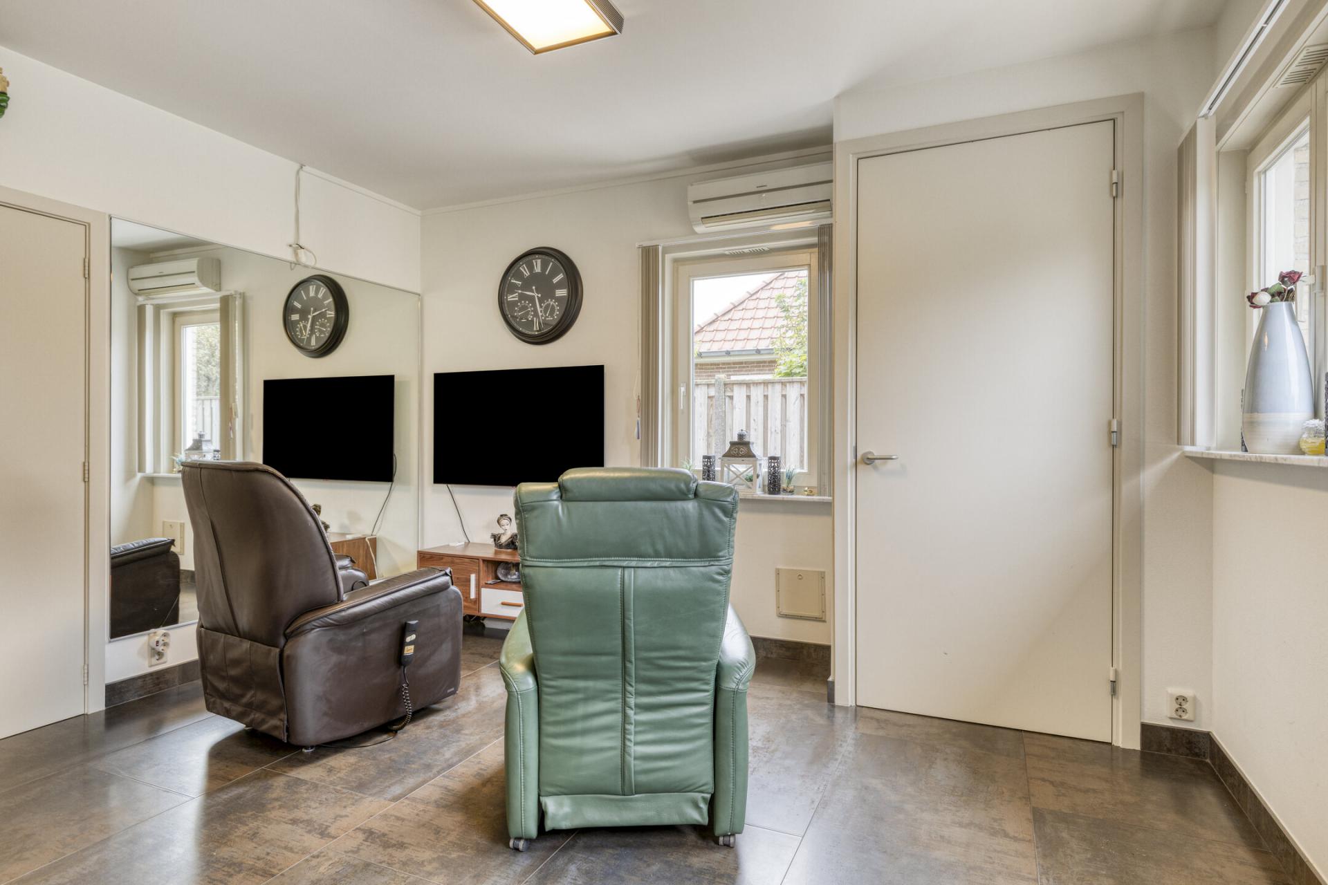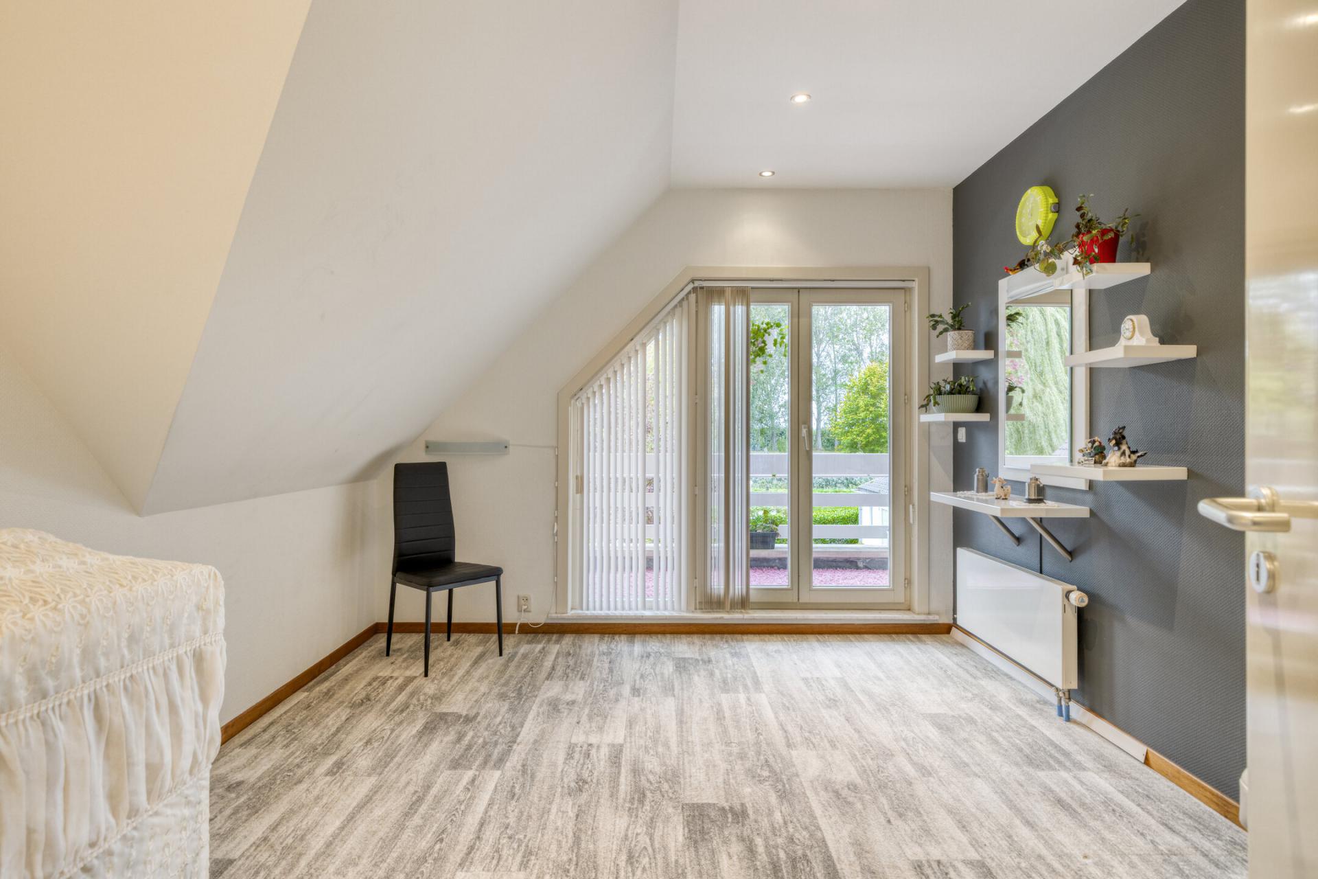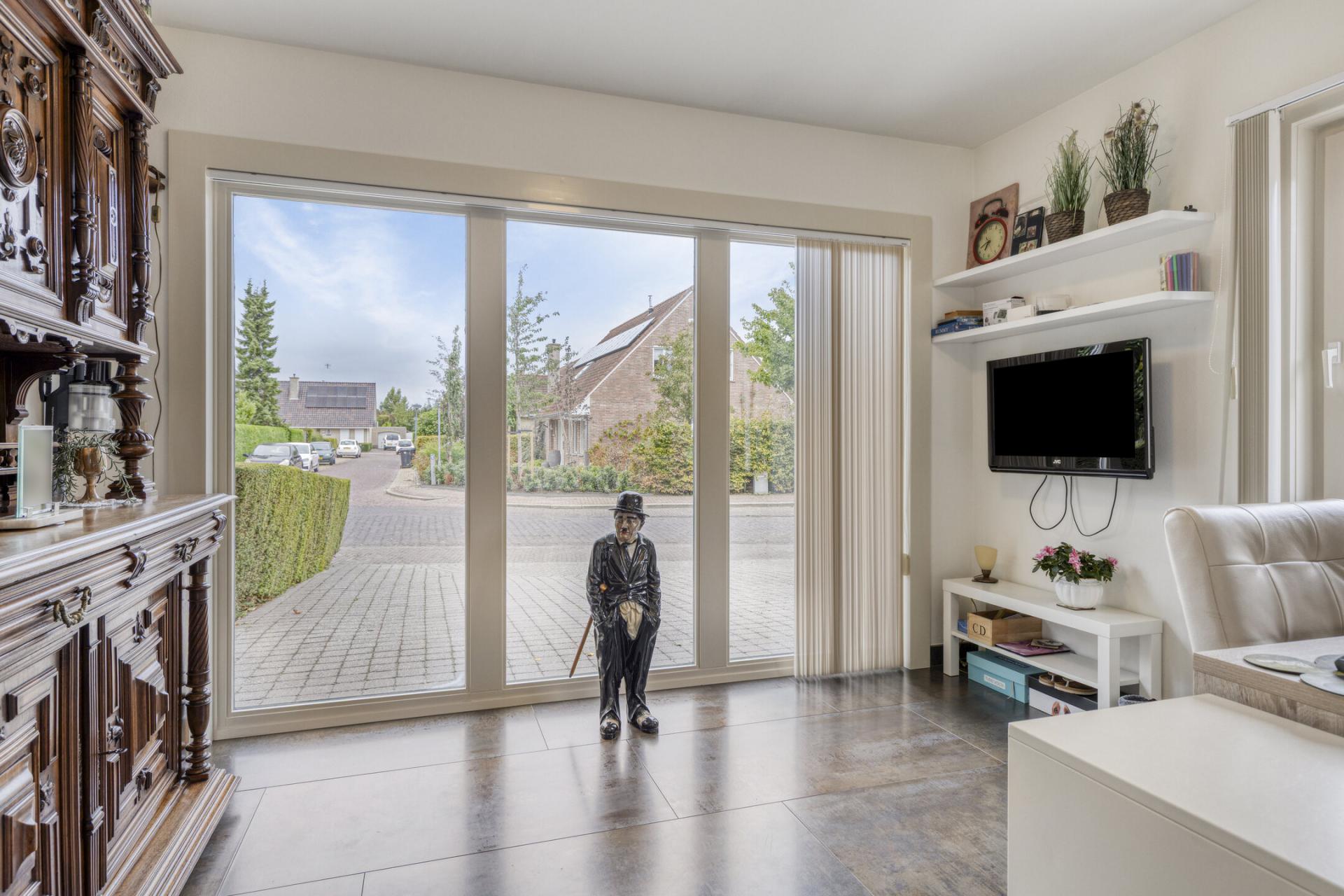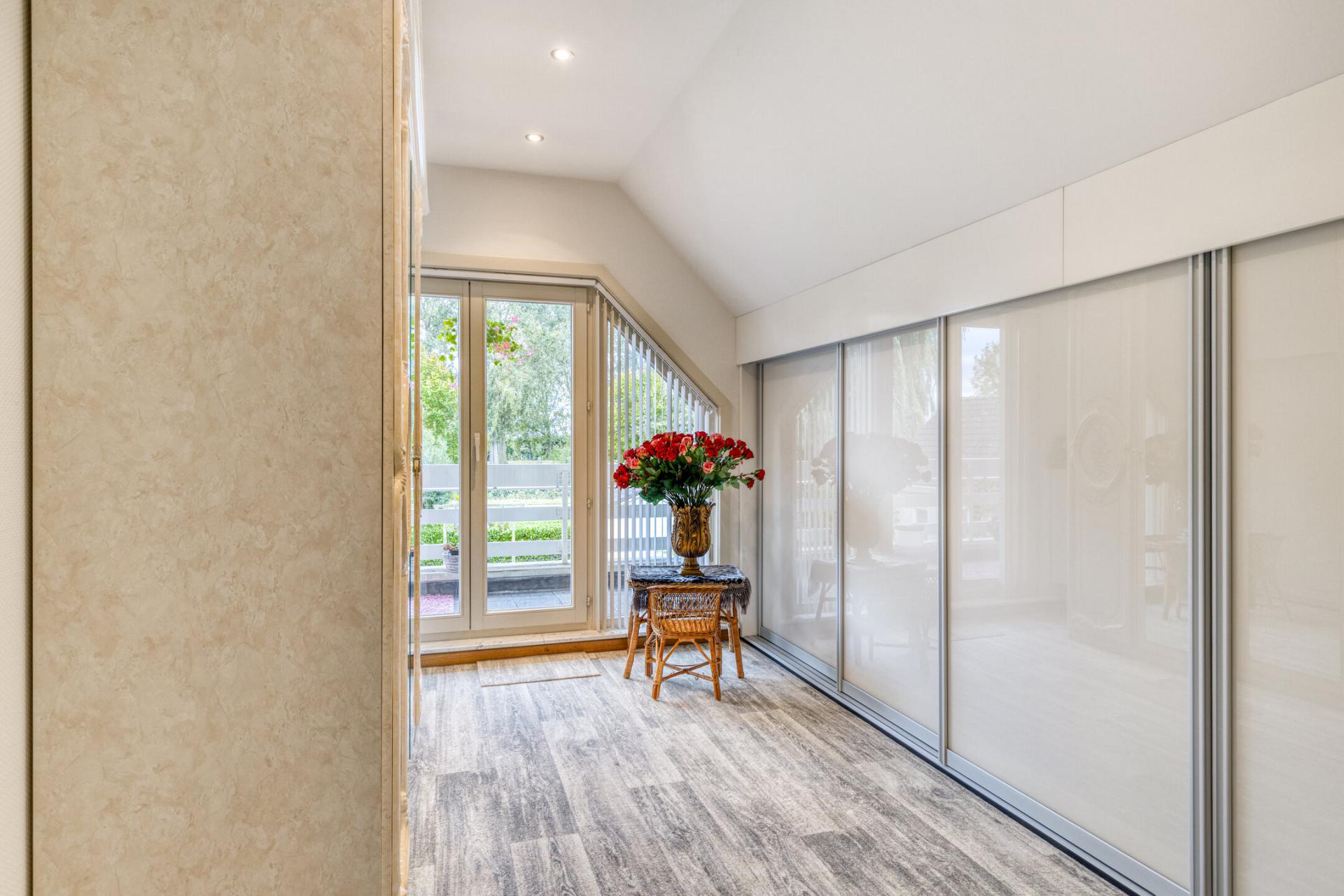 Deze heerlijke kamer is zeer royaal voorzien van glaspartijen en het baadt dan ook in daglicht.
