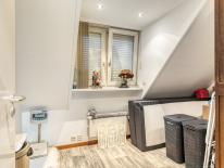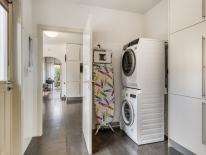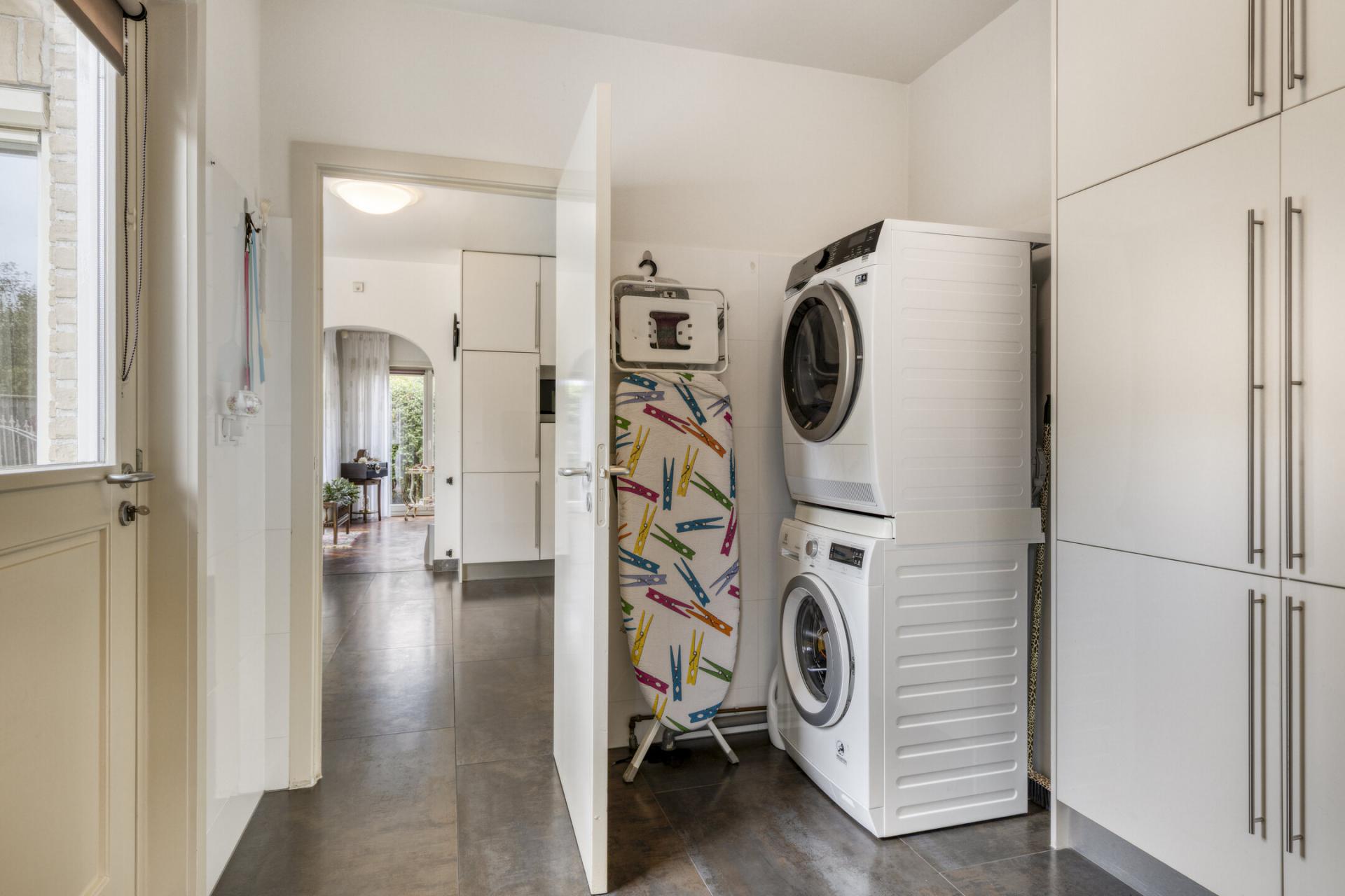Verder lopend komen we in de bijkeuken welke is voorzien van de witgoedaansluitingen en veel vaste bergruimte.