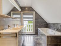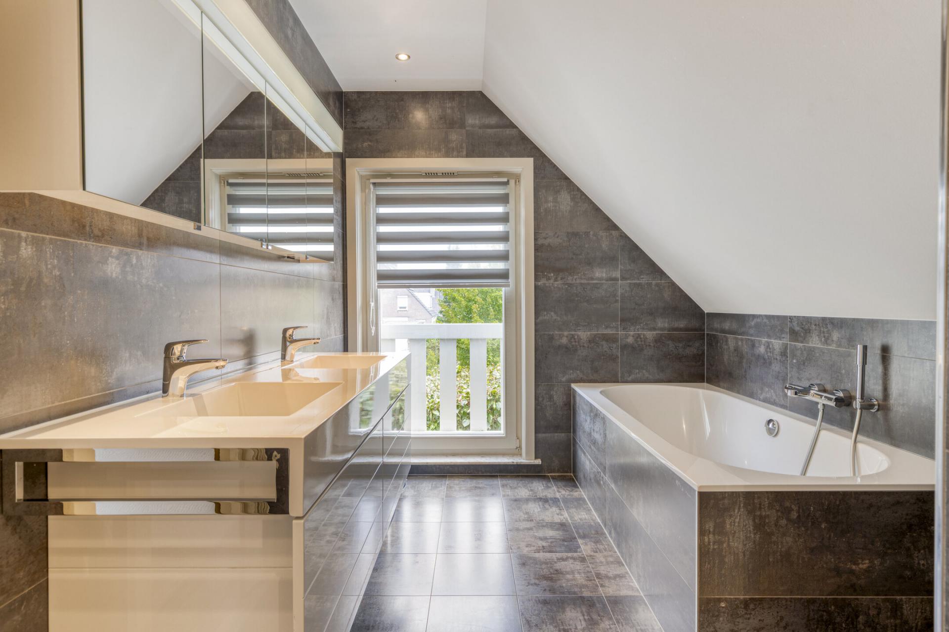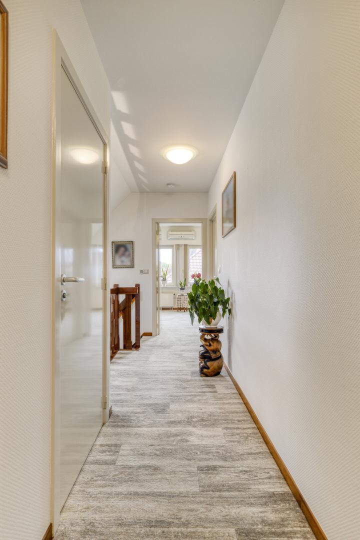 De overloop beslaat vrijwel de gehele breedte van het pand en i.c.m. de fraaie vide krijg je hier het gevoel je in een luxe hotel te bevinden. Aan deze overloop grenzen vijf prachtige slaapkamers waarvan er twee zijn voorzien van vaste kasten over de gehele breedte en twee slaapkamers hebben toegang tot het prachtige balkon waar het vroeg in de morgen heerlijk toeven is met een bakje koffie. Een andere slaapkamer + de badkamer hebben een frans balkon. De bovenverdieping is voorzien van een luxe badkamer met ingebouwde garnituur, een inloopdouche, dubbele wastafel en ligbad. Het tweede toilet op deze verdieping is apart van de badkamer. De bovenverdieping is voorzien van airco.