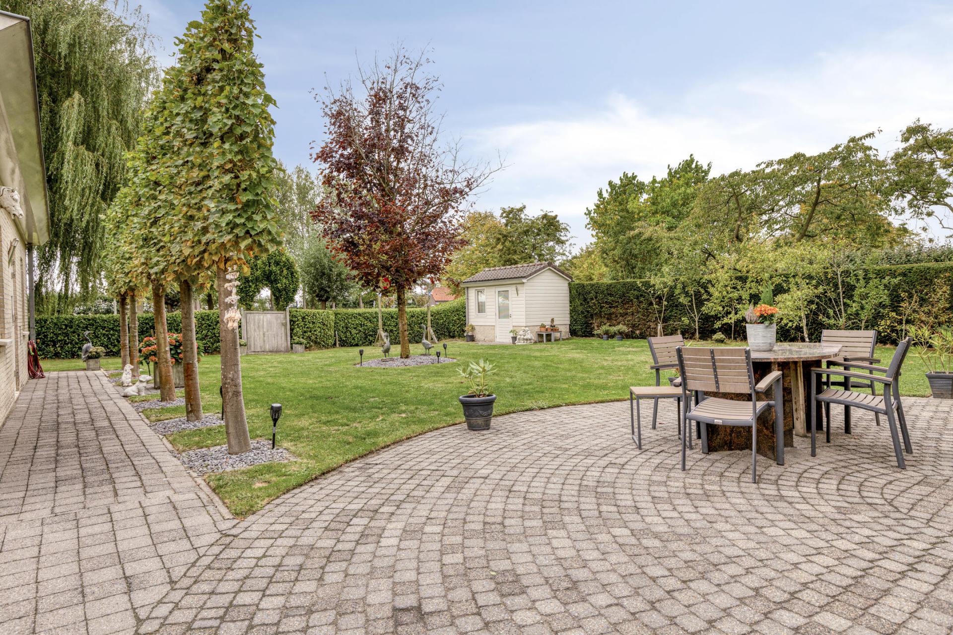 Verder in de tuin nog een lief tuinhuisje wat onderhoudsvriendelijk is uitgevoerd in kunststof.