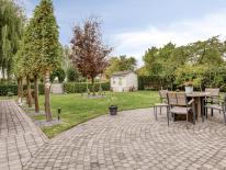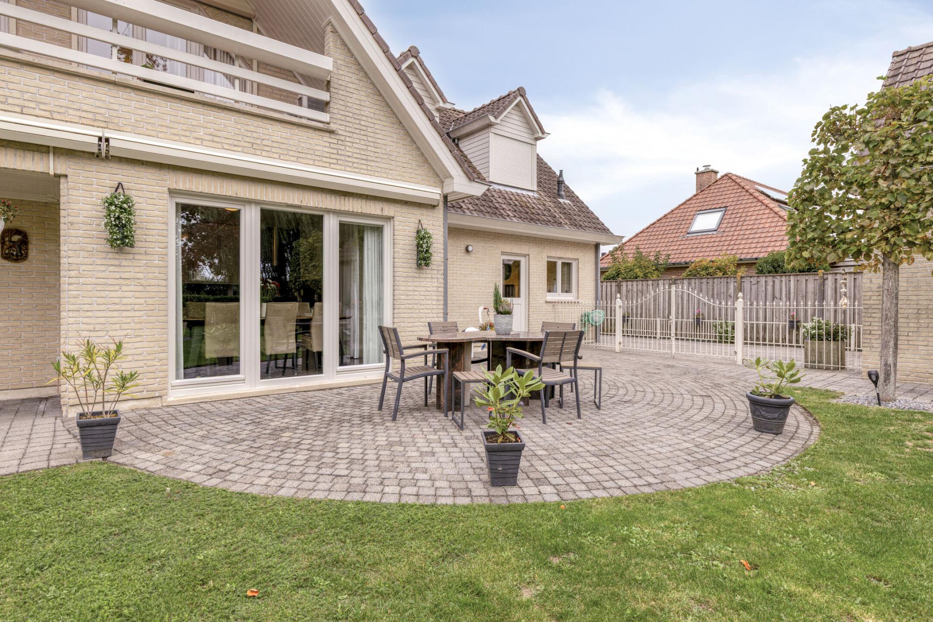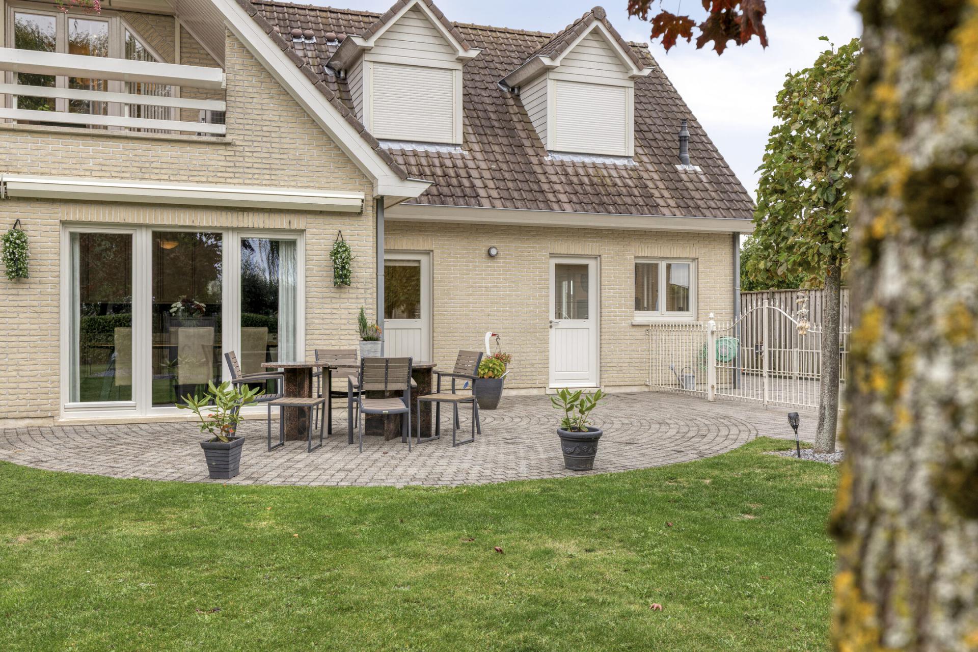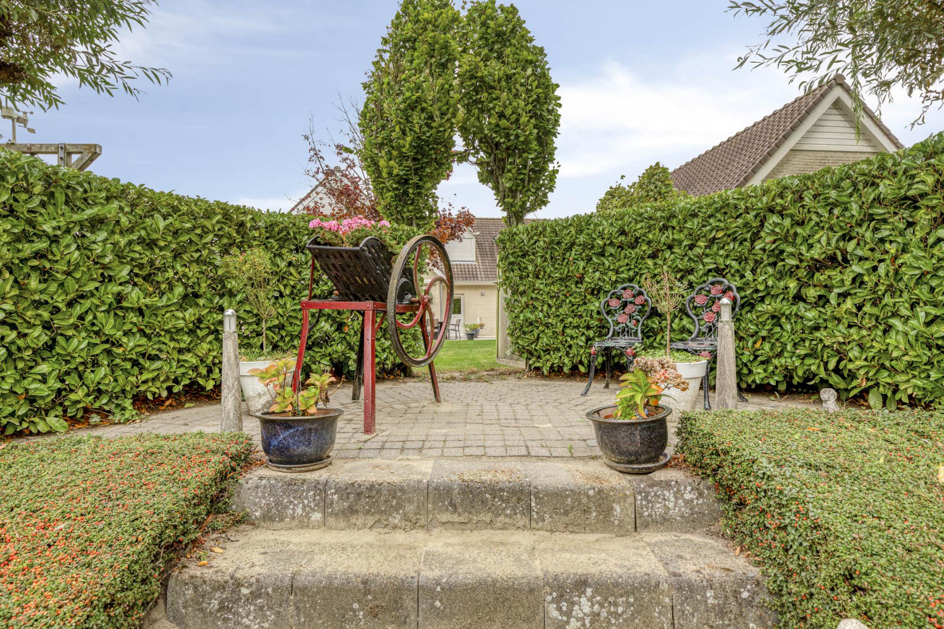 Gelegen op het zuiden vind je hier altijd de zon maar ook meer dan genoeg schaduwrijke plekjes voor verkoeling. Het oprijpad en het terras zijn verhard, verder is het grotendeels gazon en volwassen beplanting. Het terrein is geheel omheind dus kinderen en/of huisdieren kunnen hier niet ontsnappen als dat niet gewenst is.
