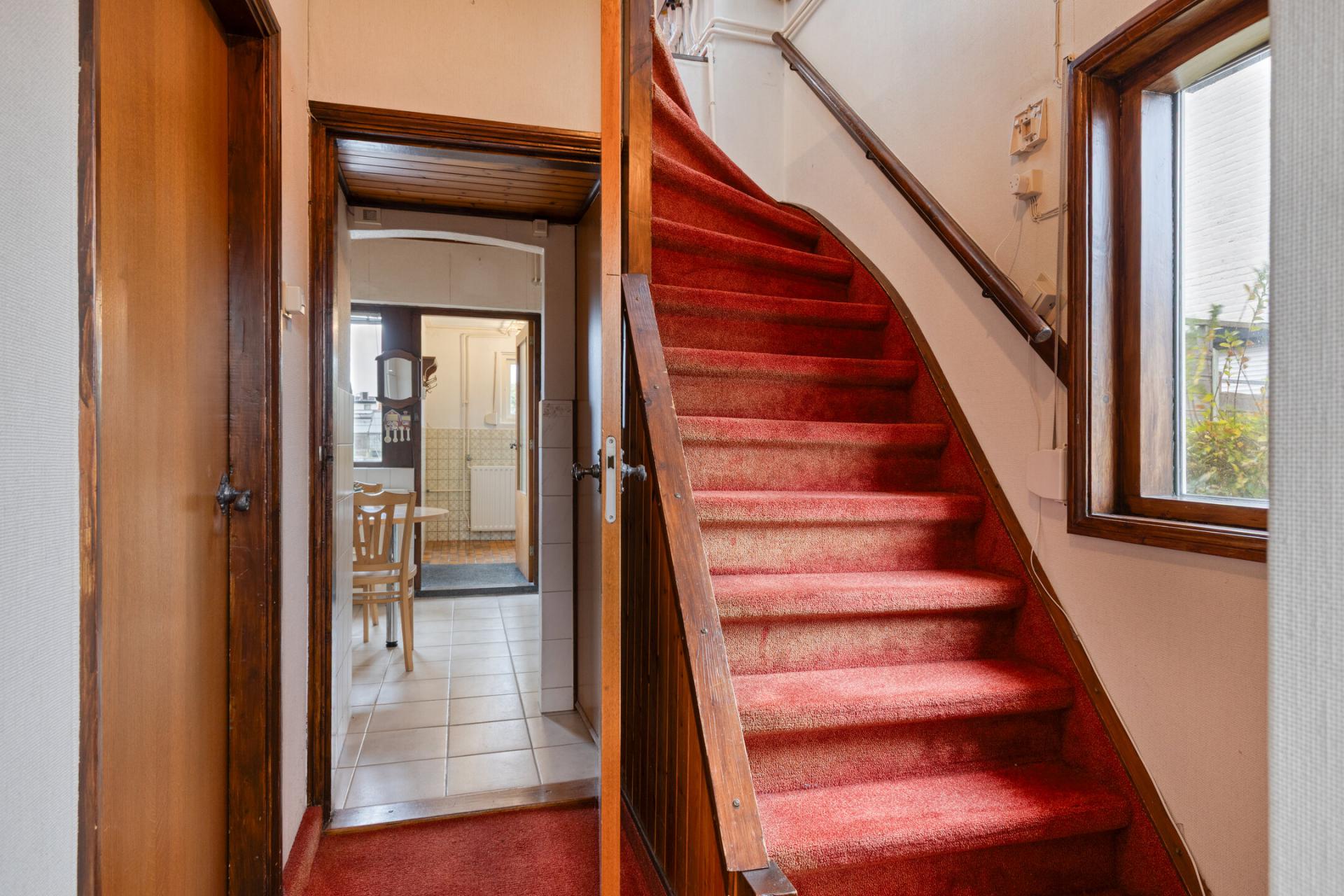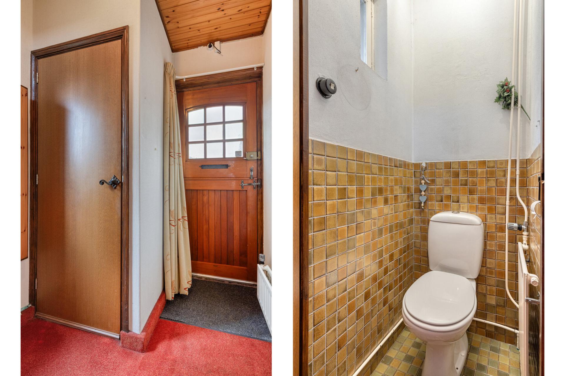 Entree in de hal met separaat toilet en trapopgang naar de eerste verdieping.