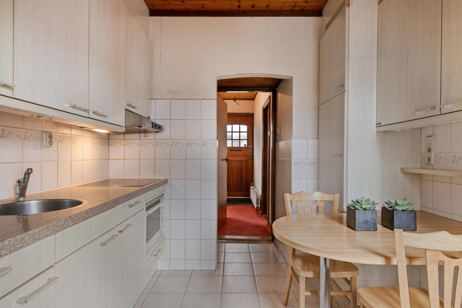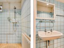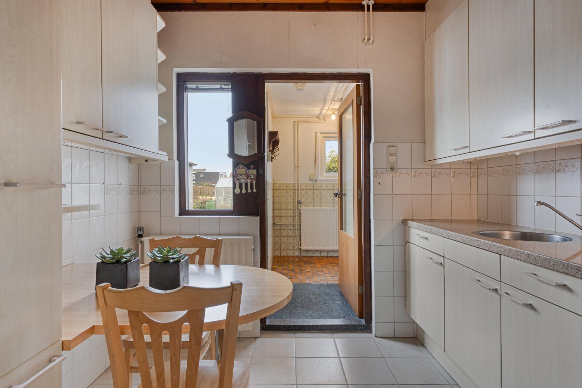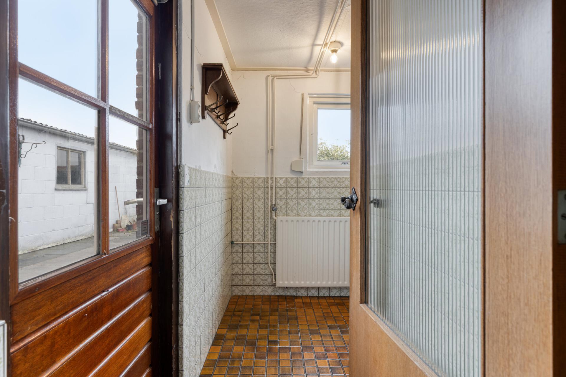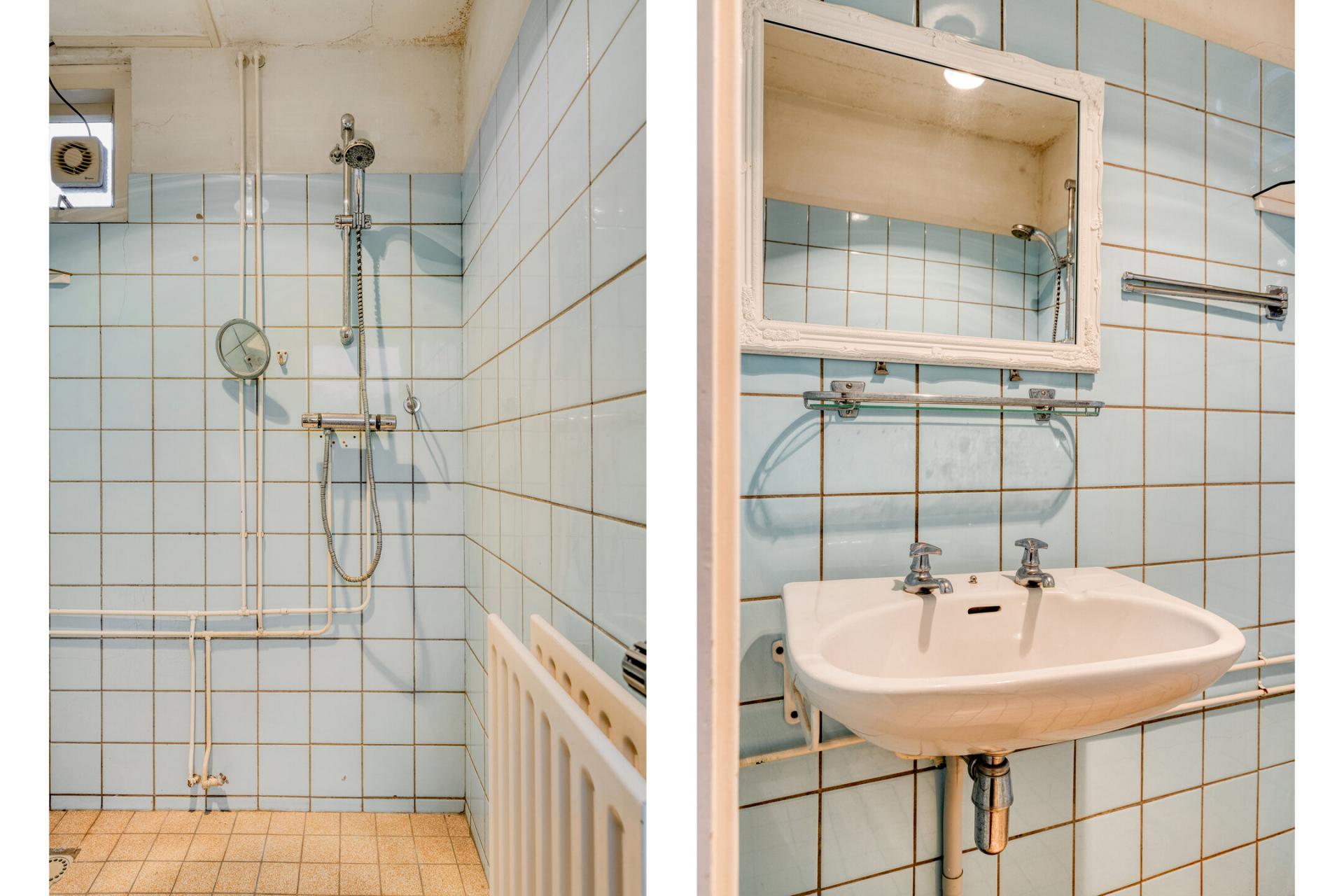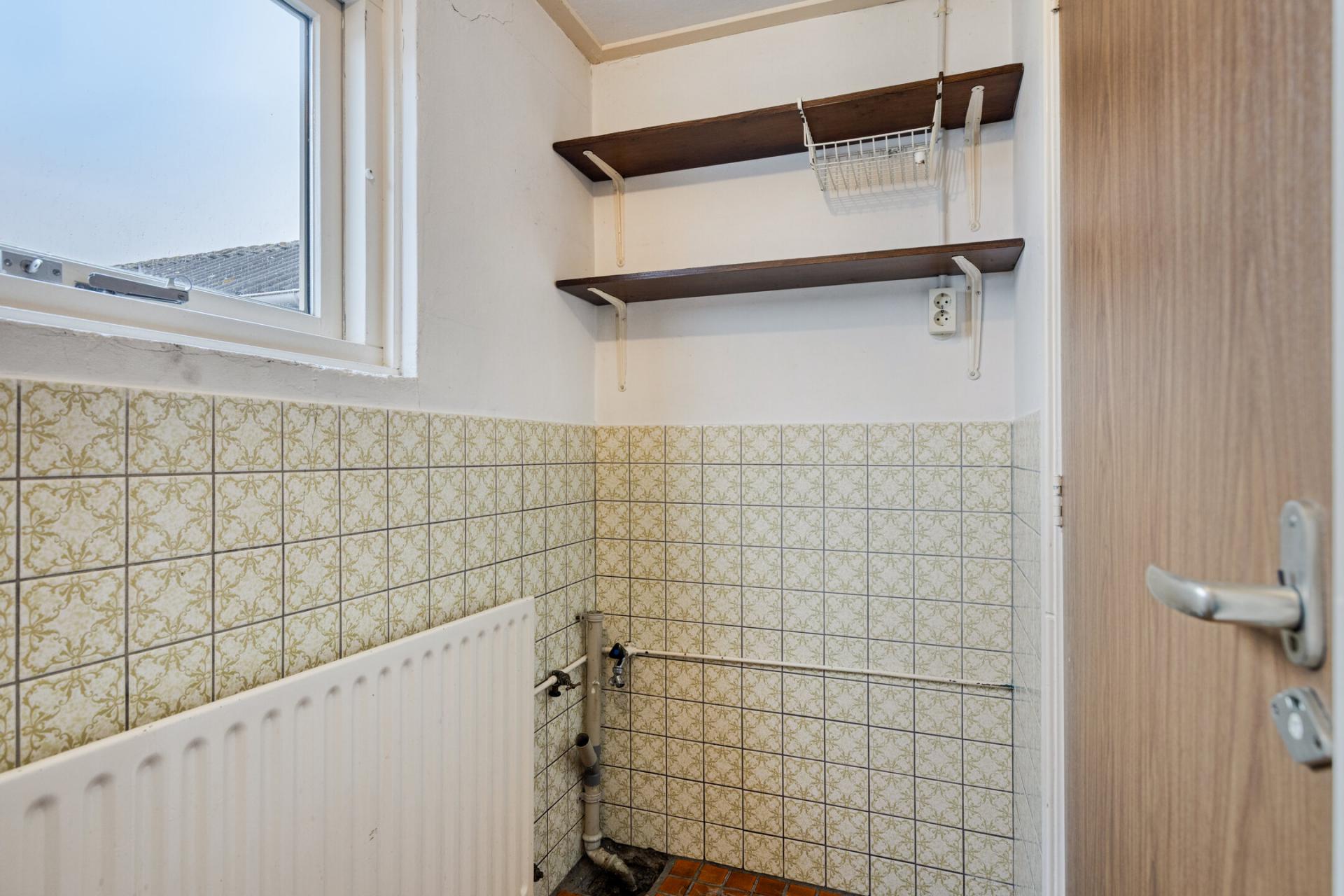 Aansluitend de bijkeuken met aansluiting voor het witgoed en de badkamer. De badkamer is verouderd en aan vervanging toe, het voorziet in een douche en wastafel.