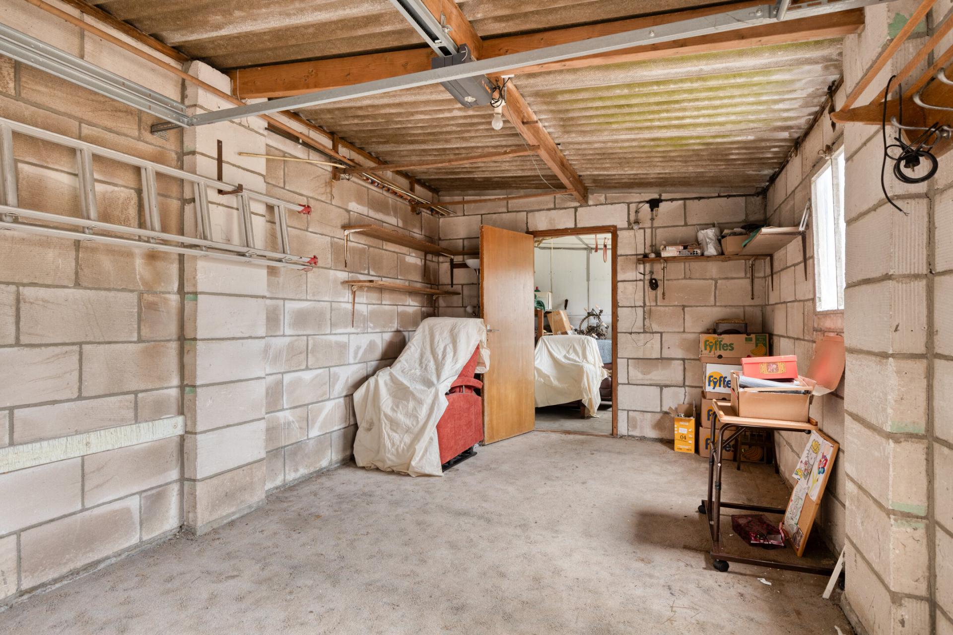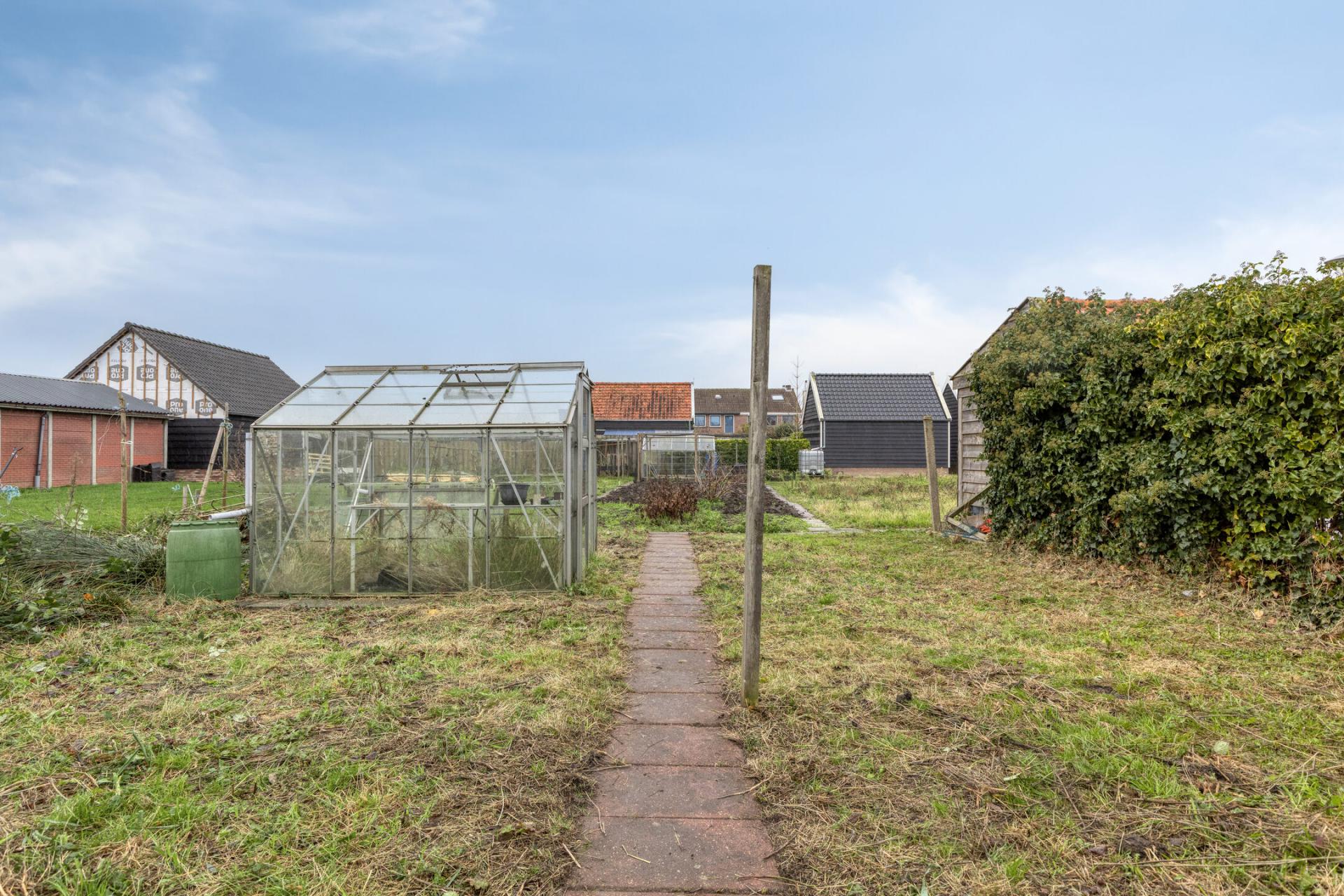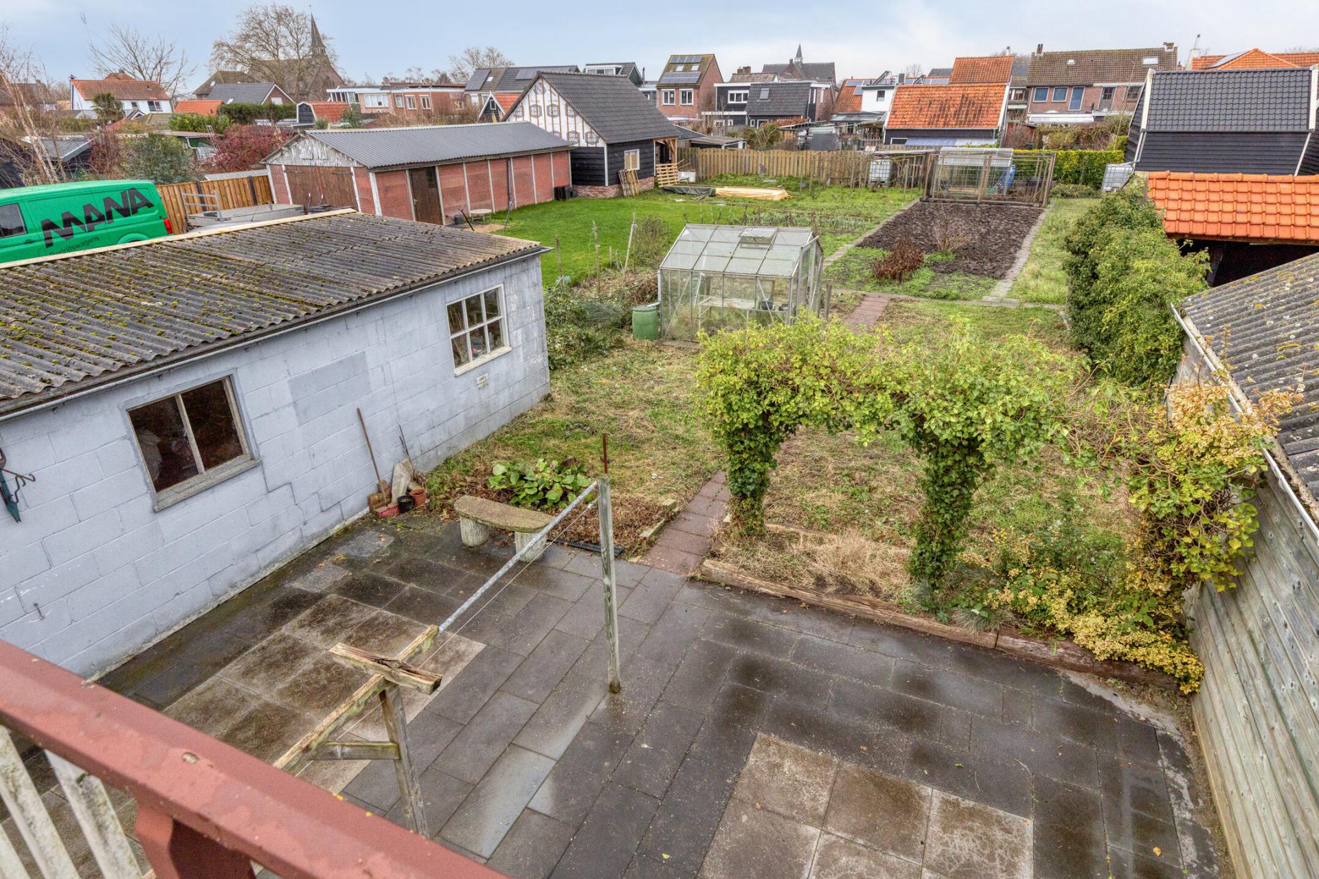 Er staat een flinke schuur op het perceel met een afmeting van 09.00m x 3.14m. De schuur is voorzien van elektra, een keukenblokje en een elektrisch bedienbare sectionaaldeur.