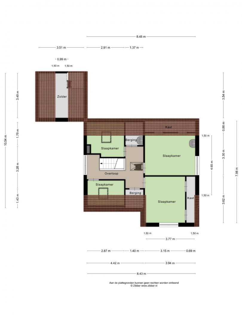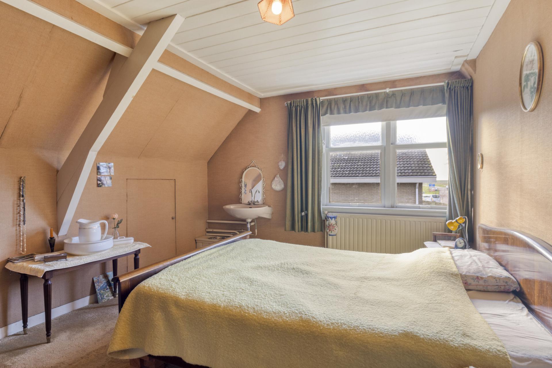 De twee grootste slaapkamers zijn voorzien van vaste kasten/afgewerkte knieschotten tevens is één ervan voorzien van een wasgelegenheid.