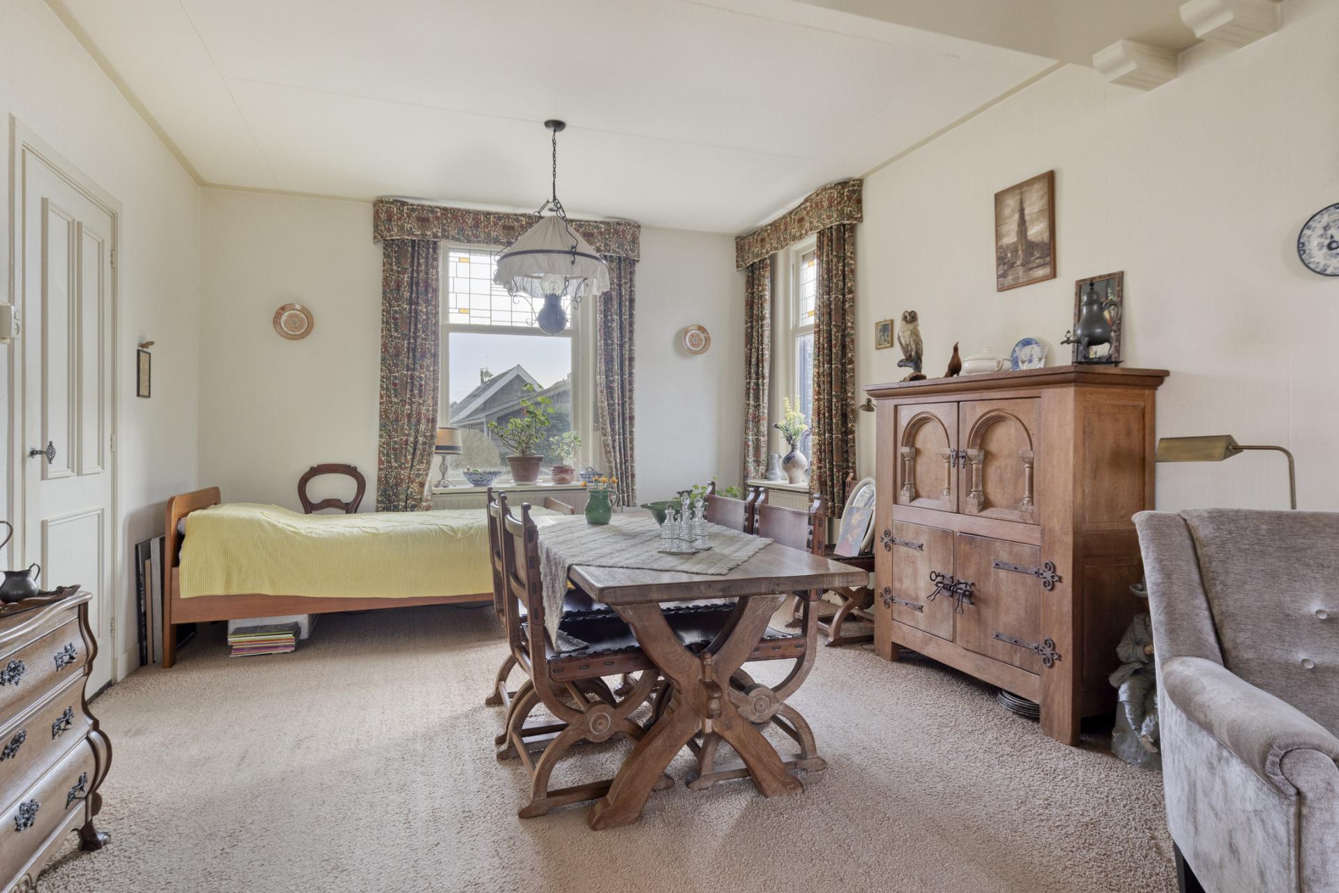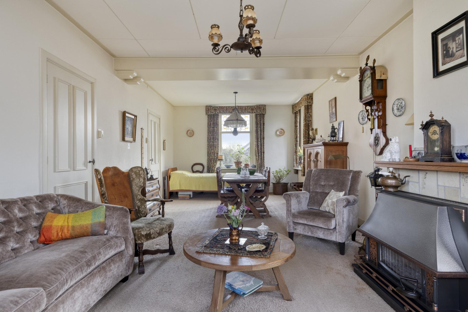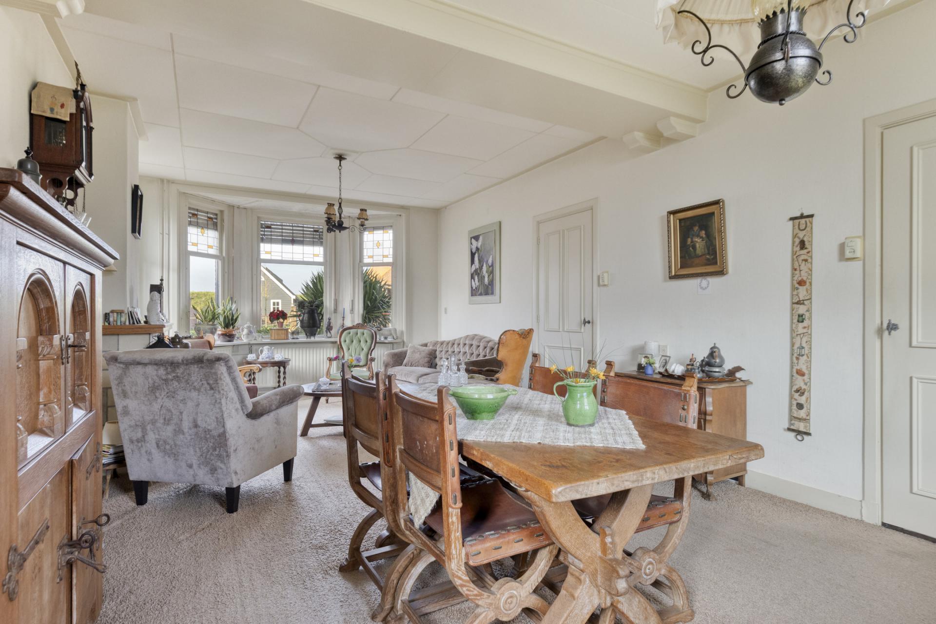 Aansluitend de woonkamer, deze is met ruim 31m2 royaal te noemen en aan de voorzijde voorzien van een fraaie erker. Er is nog een gaskachel aanwezig maar die is meer voor de sier, de woning is voorzien van een cv-installatie.