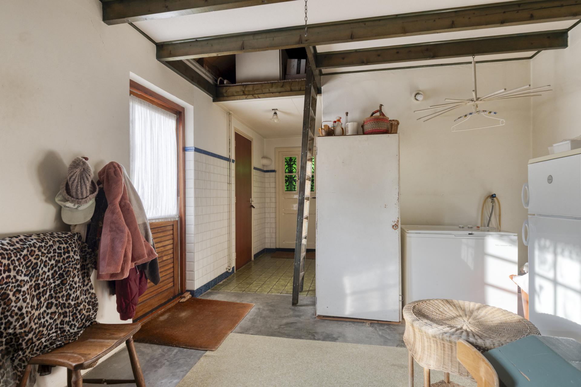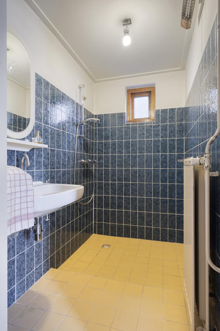 Aansluitend de forse bijkeuken met ruime zolder. Hier bevindt zich de cv-opstelling (Nefit bj. 2012) en de aansluiting voor het witgoed. De badkamer is netjes maar eenvoudig evenals het ruime separaat toilet.